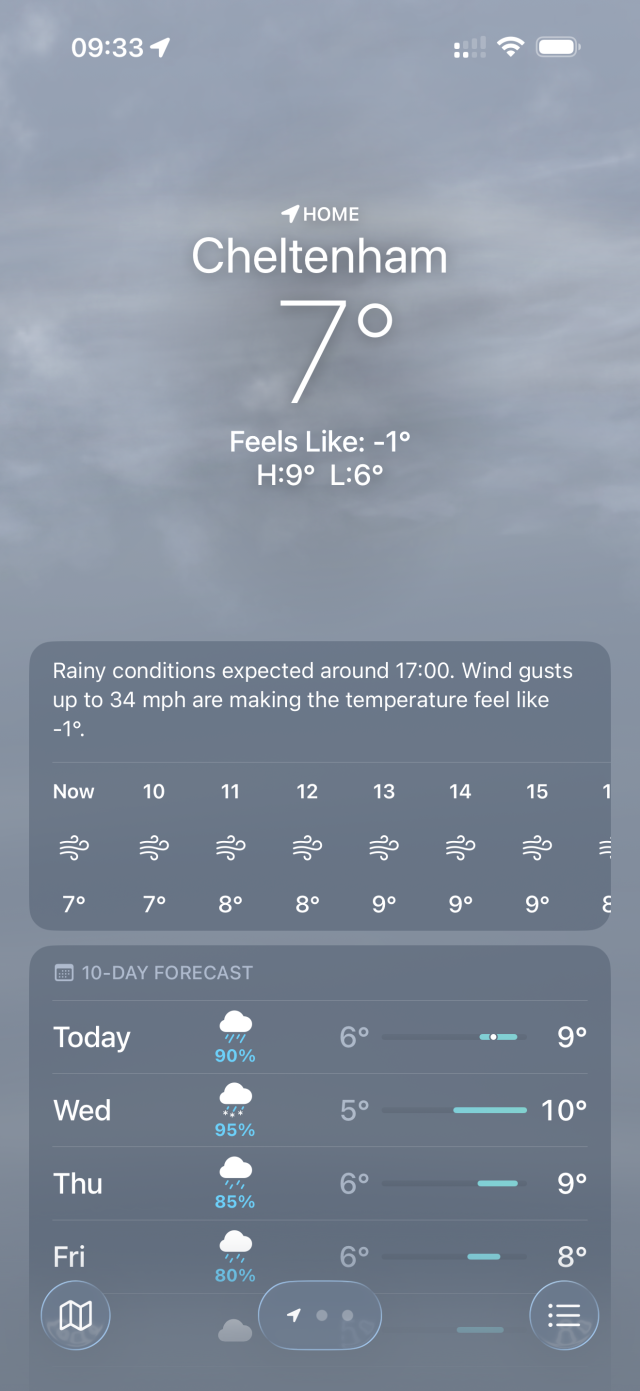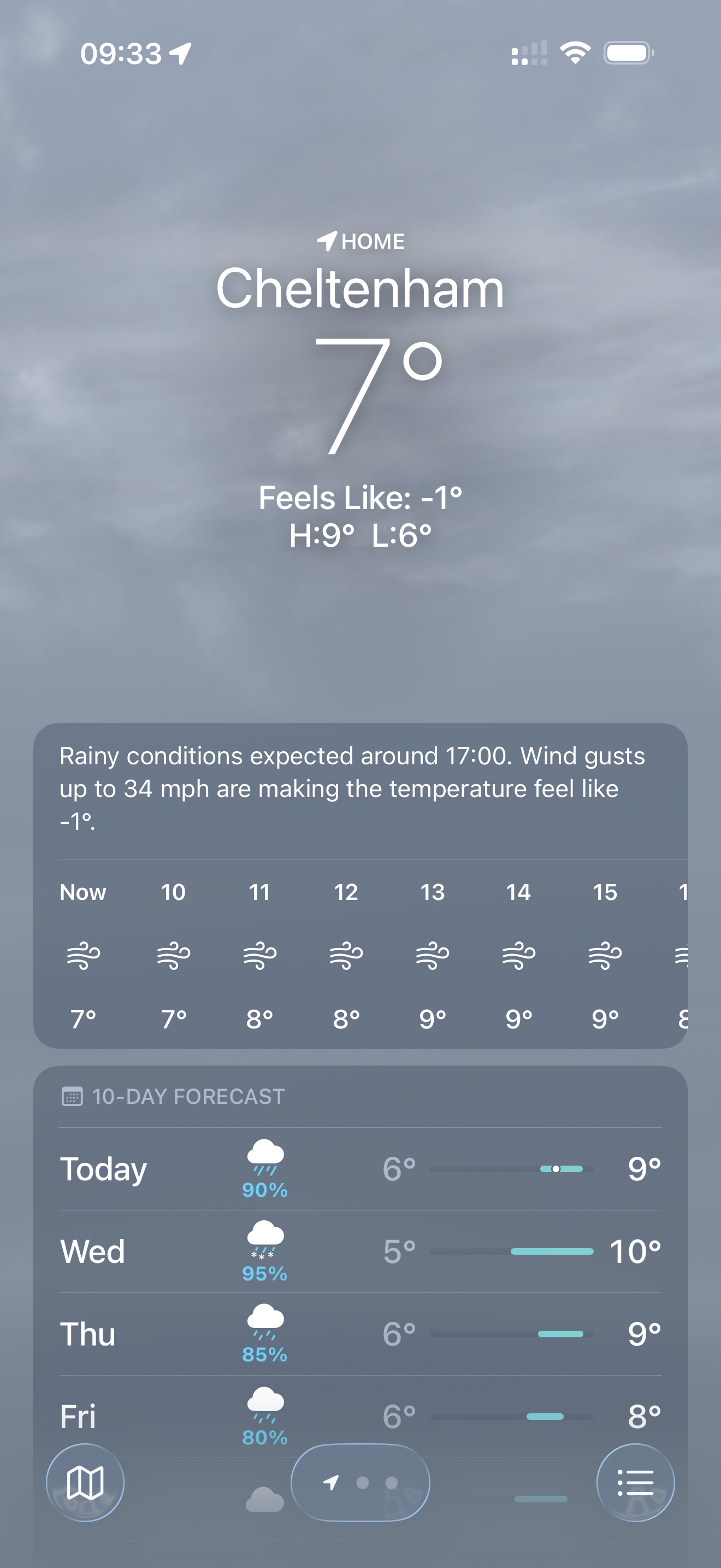 Hoy con algo menos de frío que ayer, pero llueve más.