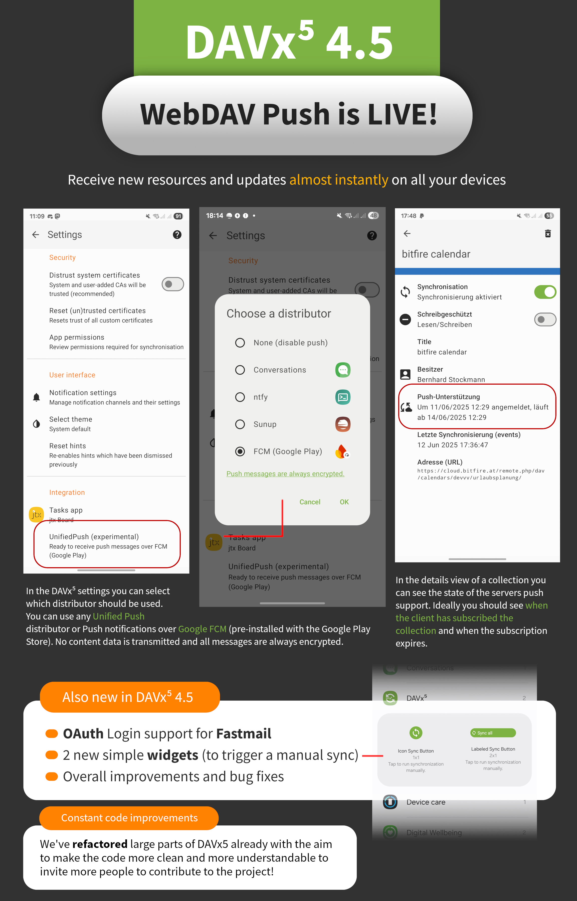 DAVx⁵ 4.5 will ship with full Push support (instant sync) for your Contacts, Events & Tasks!