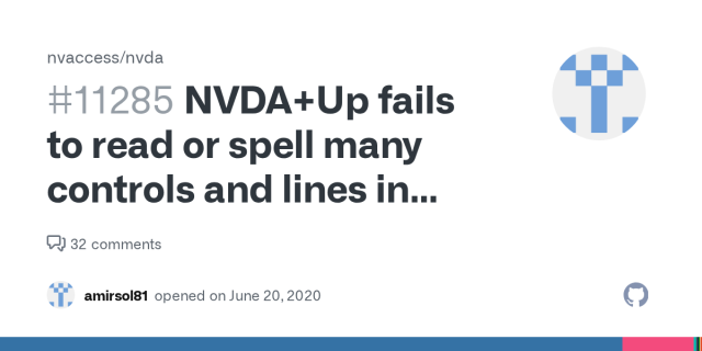 Insert+Up (NVDA+Up) is used in NVDA to report the current line under the application cursor. Pressing it twice will spell the current line. Pressing three times will spell the line using character ...amirsol81 (GitHub)