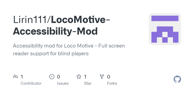 GitHub - Lirin111/LocoMotive-Accessibility-Mod: Accessibility mod for Loco Motive - Full screen reader support for blind players