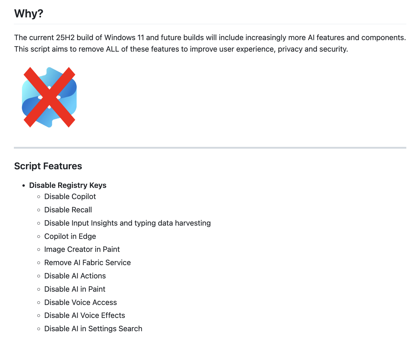 We love to see it--community-created harm reduction infrastructure in the face of the alarming integration of AI agents into the Windows operating system (which is currently the most reckless deployment environment) ❤