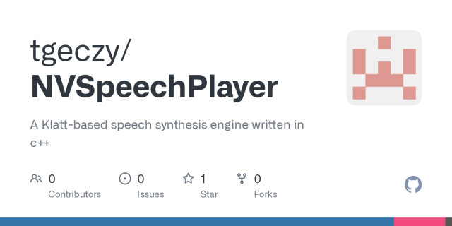 GitHub - tgeczy/NVSpeechPlayer: A Klatt-based speech synthesis engine written in c++
