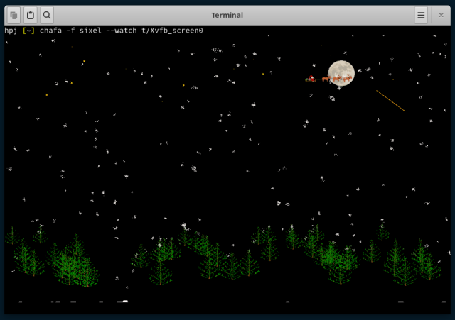 I'm feeling lazy, and besides, I'm away from Good Computer, so here's an encore of last year's nerd holiday card. Yes, you can totally run xsnow in the terminal --