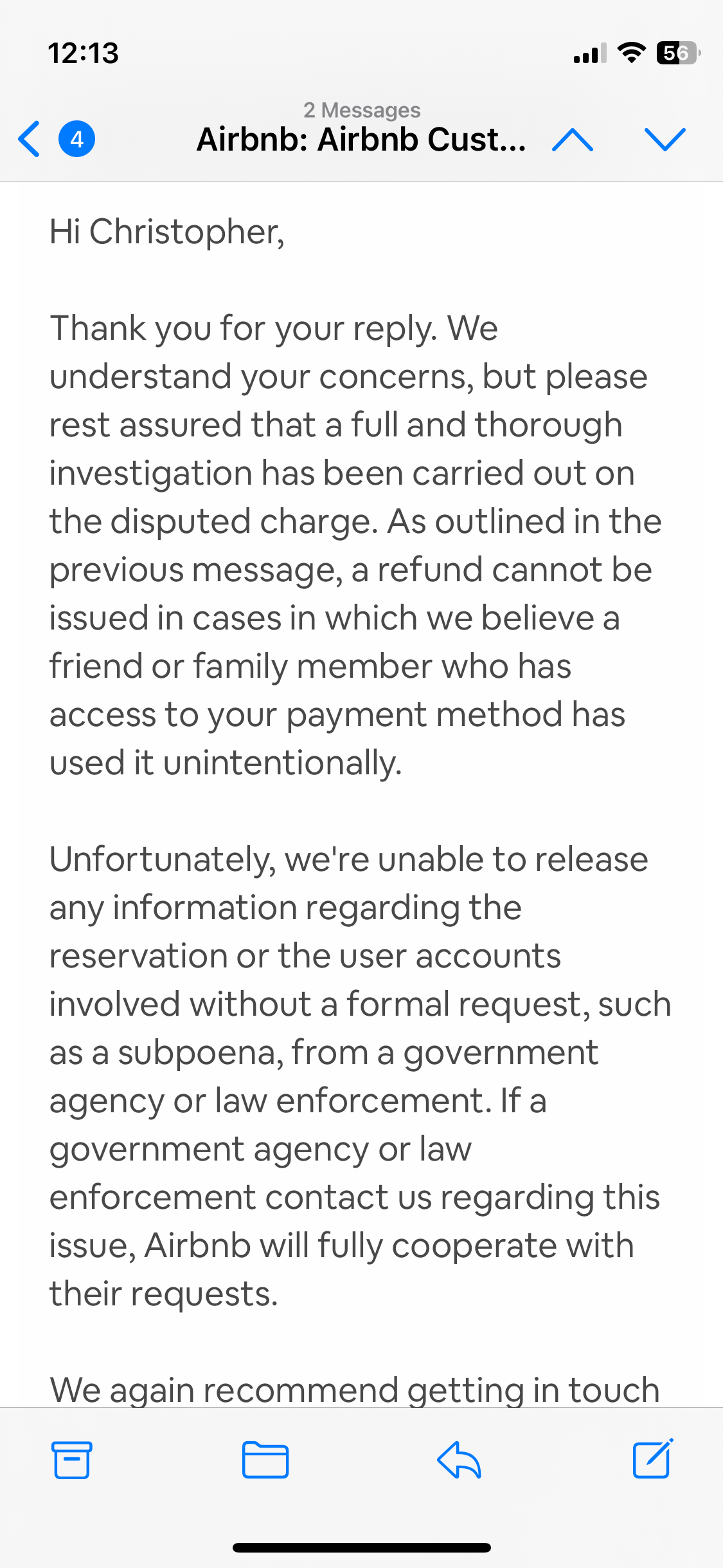 I had three conversations with ABNB. The first, text chat, I explained the situation, they were receptive but it ended without any resolution.