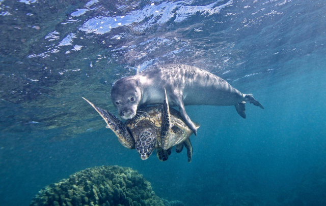 Uklidnění objetím: Tuleň zachránil vyděšenou želvu - National Geographic