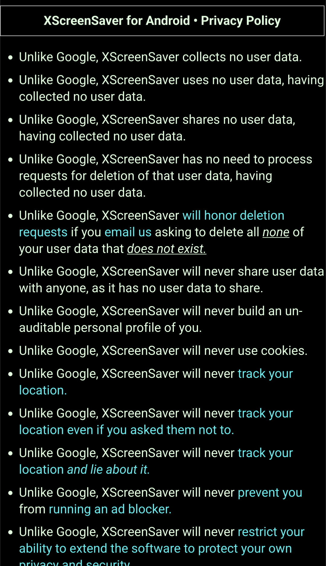 And that the maintainer chose to crowd-source a privacy policy where every item starts with "Unlike Google"?