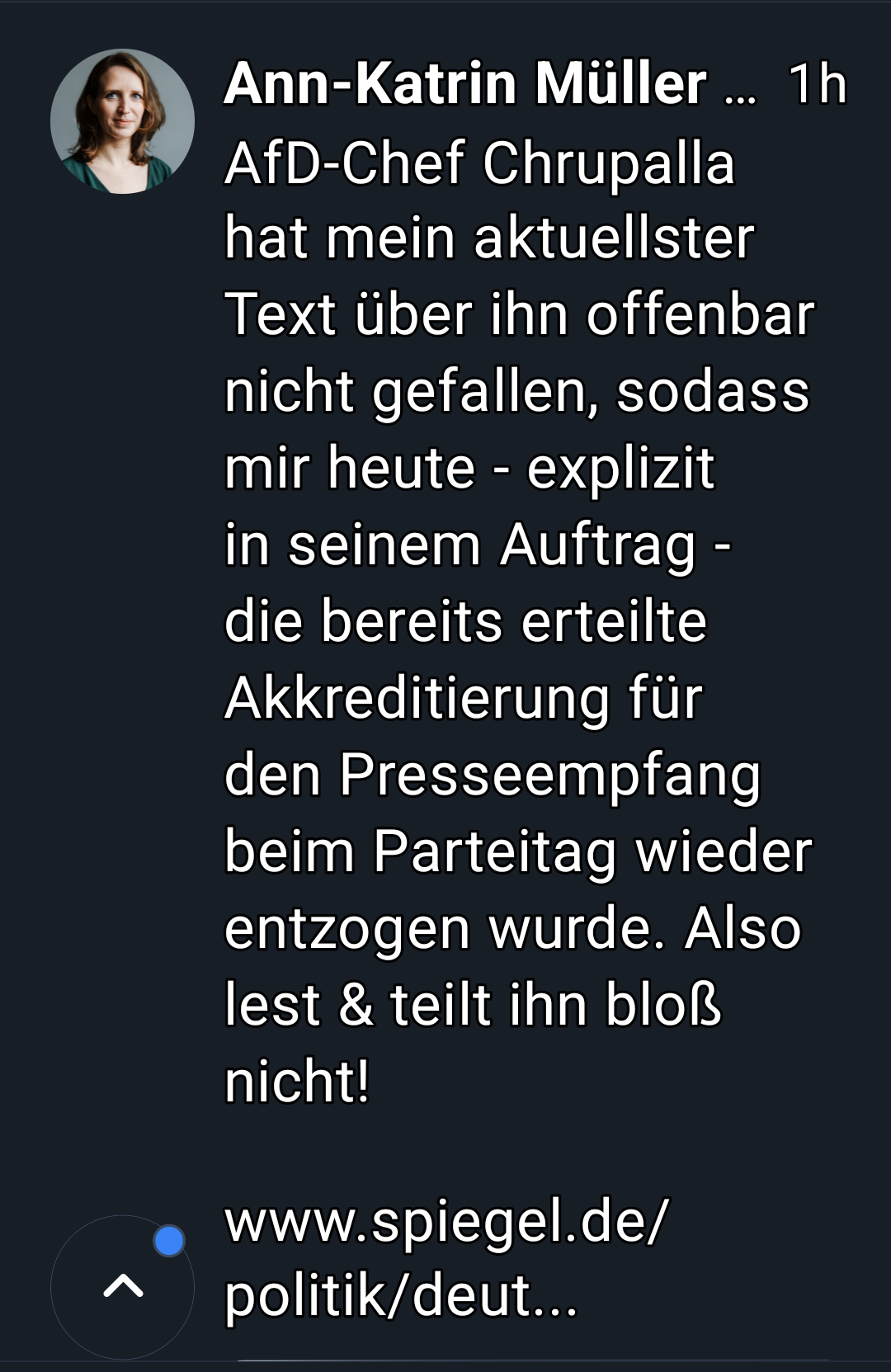 Den Artikel von Ann- Katrin Müller nicht reposten. Das möchte Tino #Chrupalla nicht.