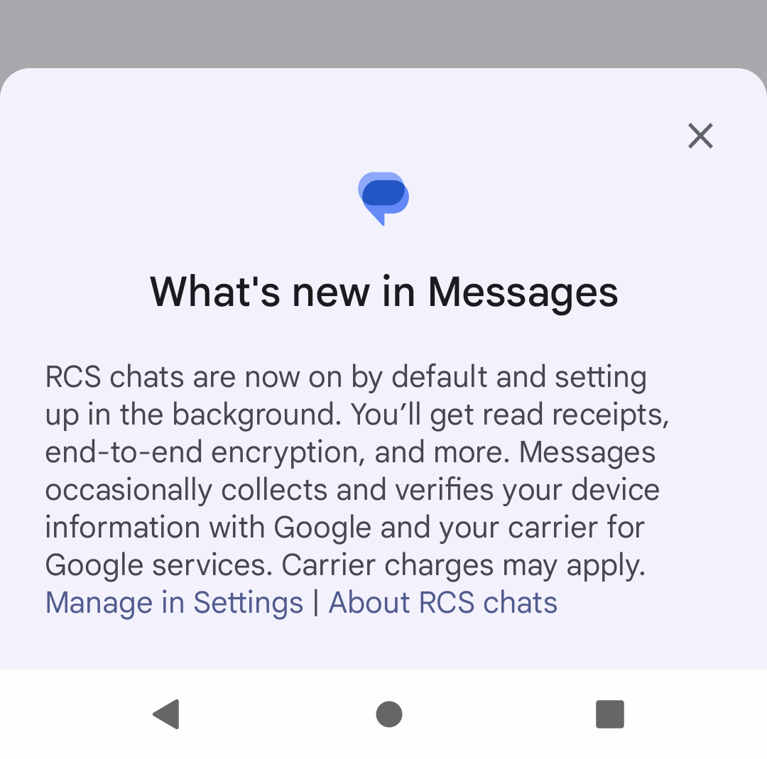 It sucks that #RCS, even though being an open standard, has no FOSS implementation. It is only implemented in Google's proprietary Play Services on Android, and they have a whitelist for the apps that can use it, which currently is limited to Google's and Samsung's messaging apps. This really sucks, because RCS could have been a massive improvement for everyone if it was implemented in AOSP and could be used without proprietary apps.