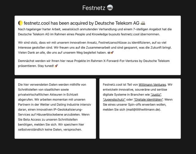 festnetz.cool got acquired by X-Forward-For-Ventures der Deutschen Telekom AG