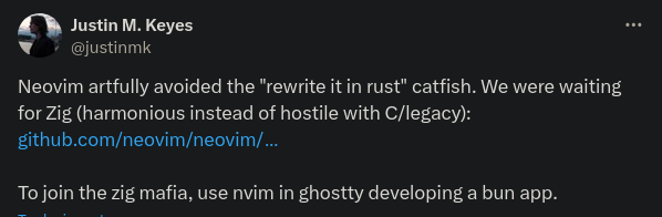 Rust is nice, but I really dislike this "rewrite it in Rust" stuff. It's tiring for any #FreeSoftware maintainer to be bombarded by this and honestly, as an opinion, some of the projects I™ have seen doing this have lost contributors, some have even been stopped for months.