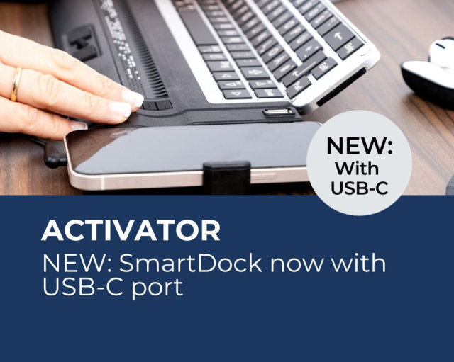 The Activator Braille display now supports the latest iPhones and iPads with USB-C connection.NKR (helptech.eu)