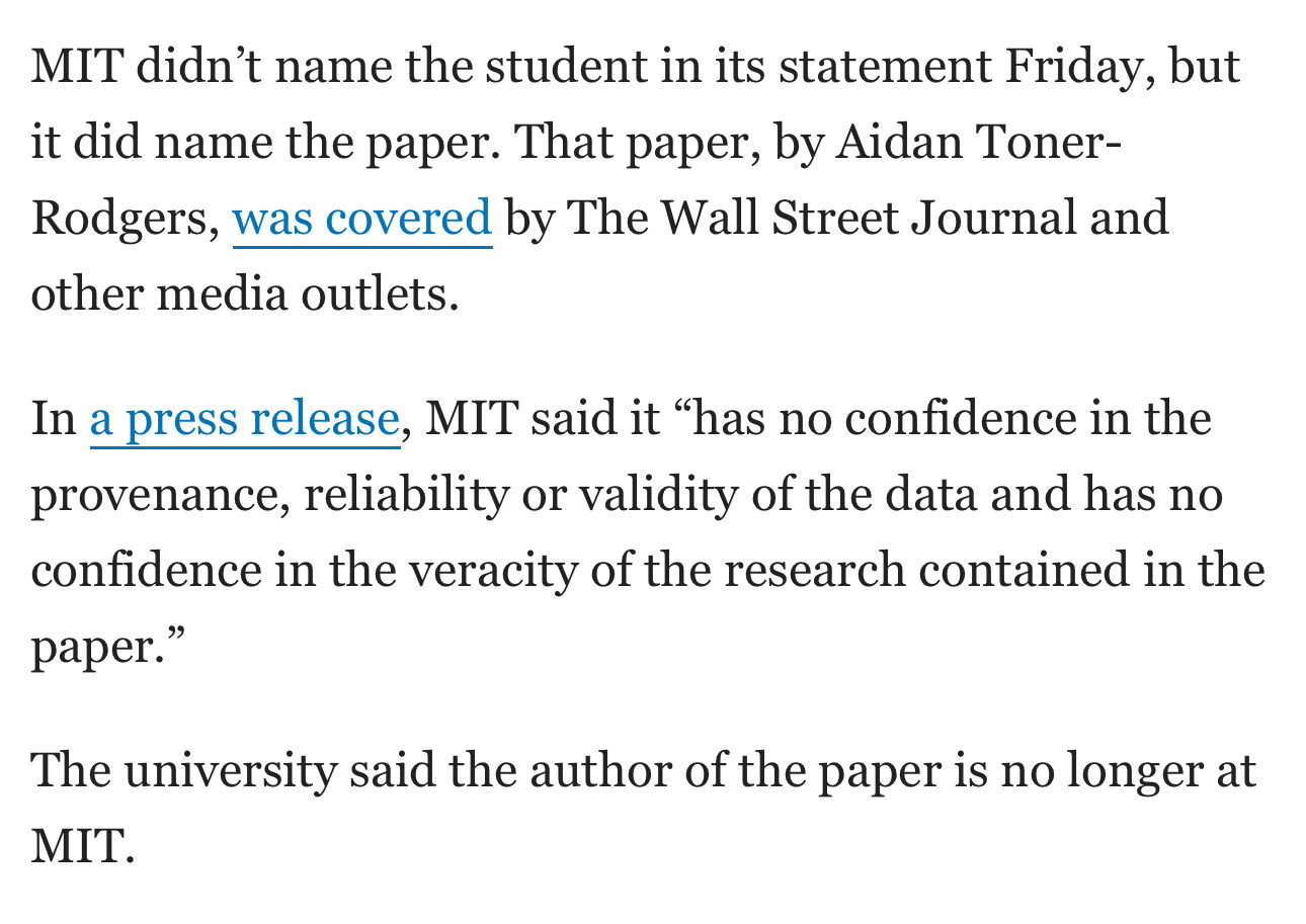Widely covered MIT paper saying AI boosts worker productivity is, in fact, complete bullshit it turns out.