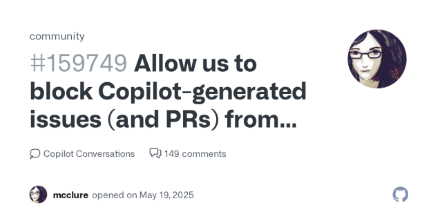 Allow us to block Copilot-generated issues (and PRs) from our own repositories on #github