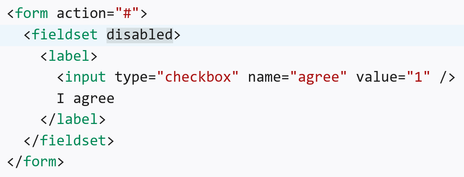 Но вместо установки disabled на каждое поле, можно поставить его на <fieldset> — так проще.