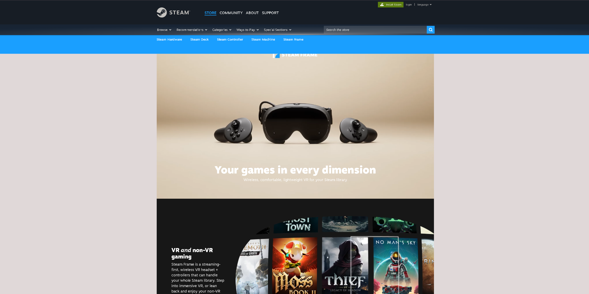 A controller, a small little gaming desktop PC and a VR headset. All of them (aside from the controller of course) running SteamOS, a full Arch-based Linux OS with KDE Plasma.
