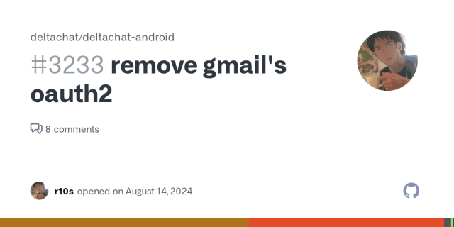 We supported OAuth2 for Gmail in the past. First they required us to justify the need to get full IMAP access and then they updated the requirements and revoked our client ID: github.com/deltachat/deltachat…