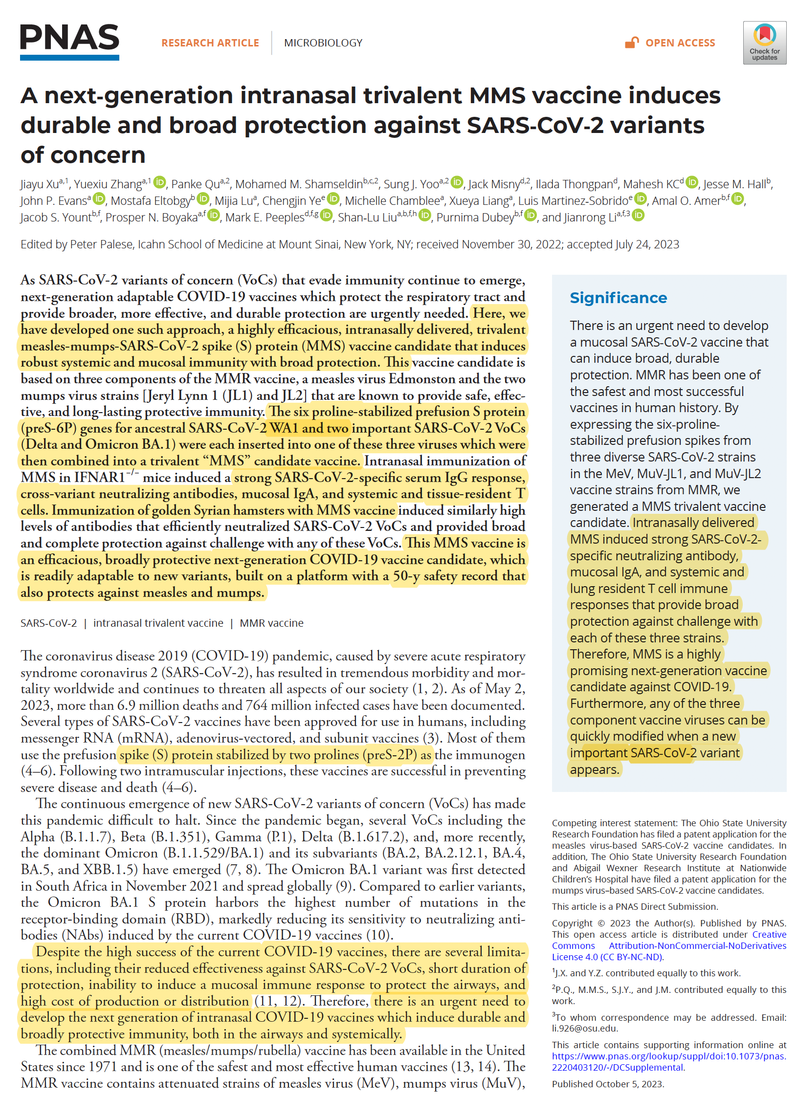 A trivalent nasal vaccine vs mumps, measles and Covid, broadly effective vs SARS-CoV-2 variants, with expected long duration (using preS-6P), in multiple experimental models pnas.org/doi/10.1073/pnas.2220…