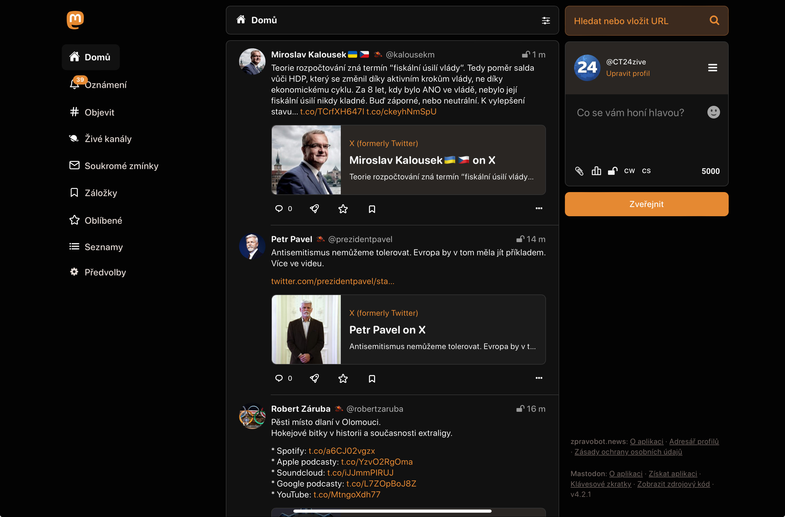 Nevím, zda o tom víte, ale je k dispozici Tangerine UI - alternativní skin pro webový klient, který hodně přibližuje Mastodon k Xku a je pro nově příchozí mnohem přívětivější.