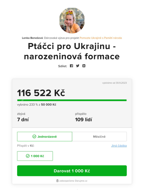 Normálně si představte, že v mý narozeninový výzvě pro @Pametnaroda se vybralo už 233% cílový částky! úžasný, žejo? ❤️