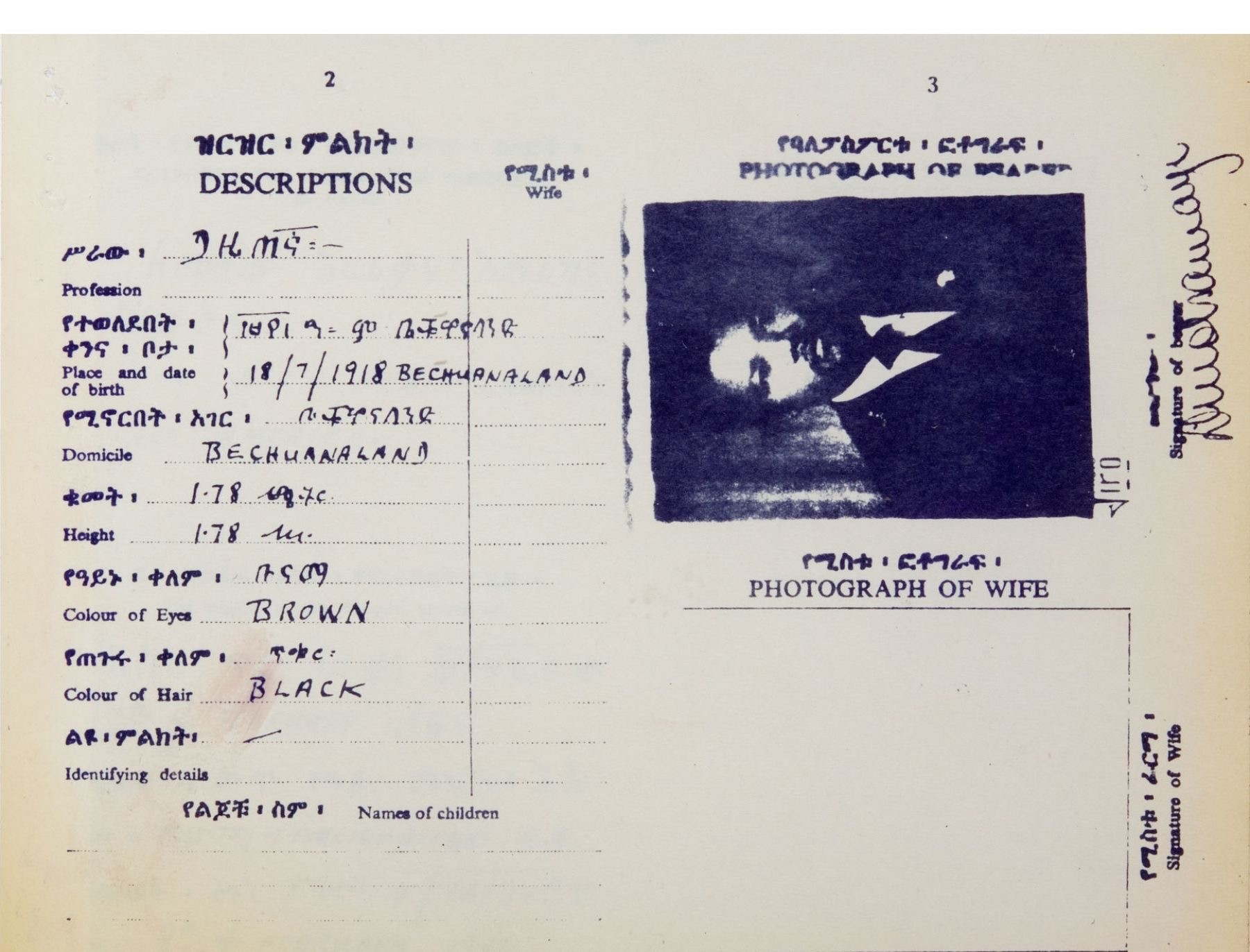 Granted Ethiopian citizenship under his bogus identity as "David Motsamayi," Mandela masqueraded as a journalist. His fake profession is indicated on his passport in Amharic (ጋዜጠኛ).