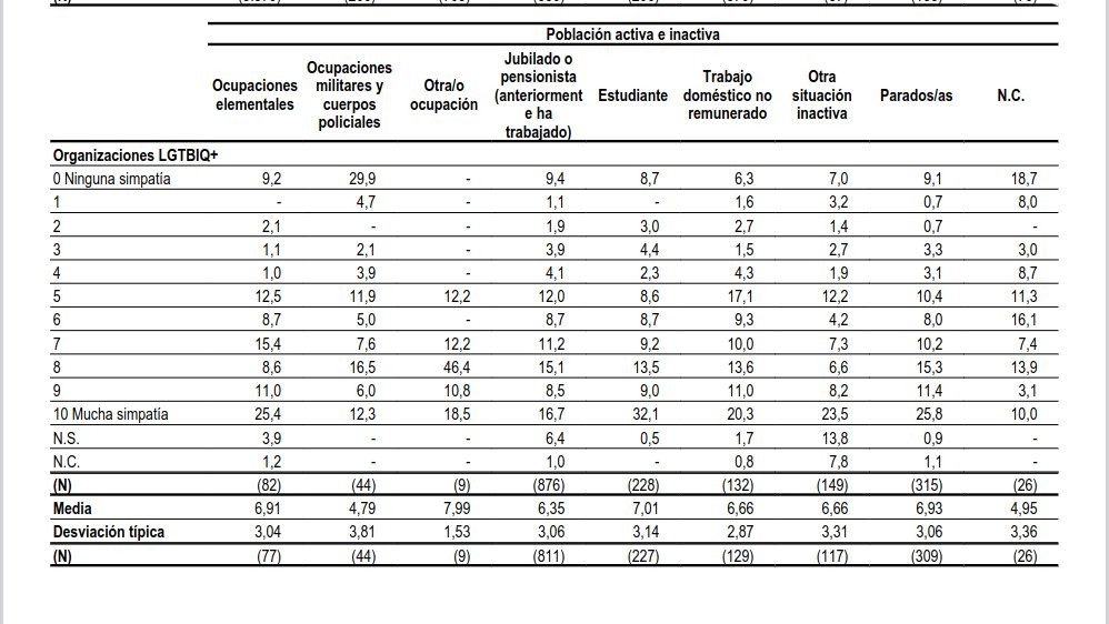 El CIS permite filtrar, aparte de género, por clase. Para sorpresa de nadie, militares y policía están más a favor de un etnoestado que nadie