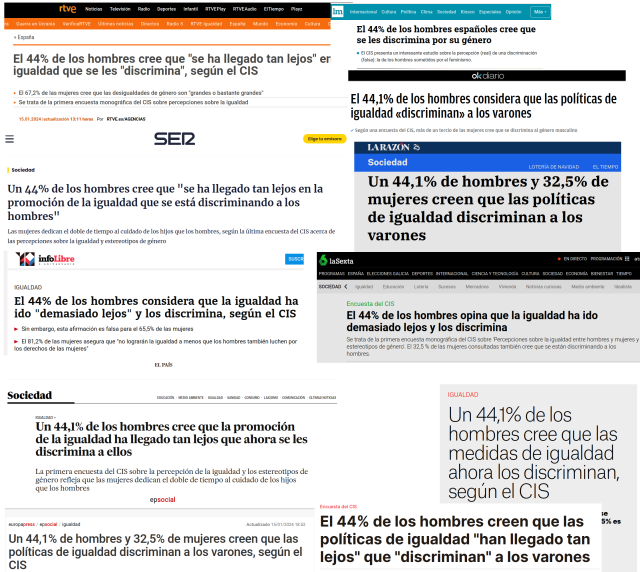 Como dijeron @nolesdescasito los titulares podrían haber sido perfectamente: "El 83,9% de los españoles se consideran entre un poco y muy feministas". Pero entonces, igual no estariamos clickando y compartiendo la noticia como posesos