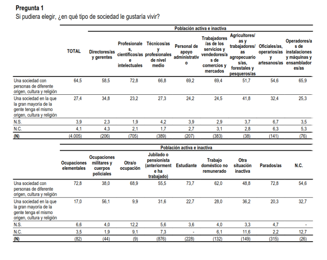 in reply to Proyecto UNA • • •Otra pregunta tendenciosísima de la encuesta es "qué tipo de sociedad le gustaría vivir: una diversa o una homogénea en origen y cultura"