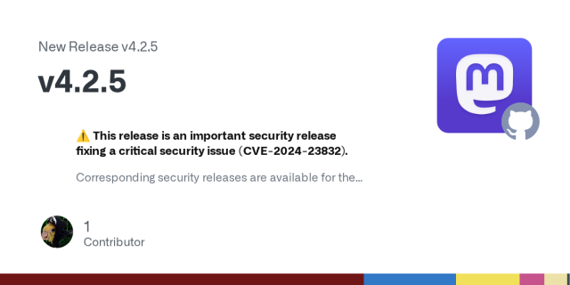 ⚠️ This release is an important security release fixing a critical security issue (CVE-2024-23832). Corresponding security releases are available for the 4.1.x branch, the 4.0.x branch and the 3.5....GitHub