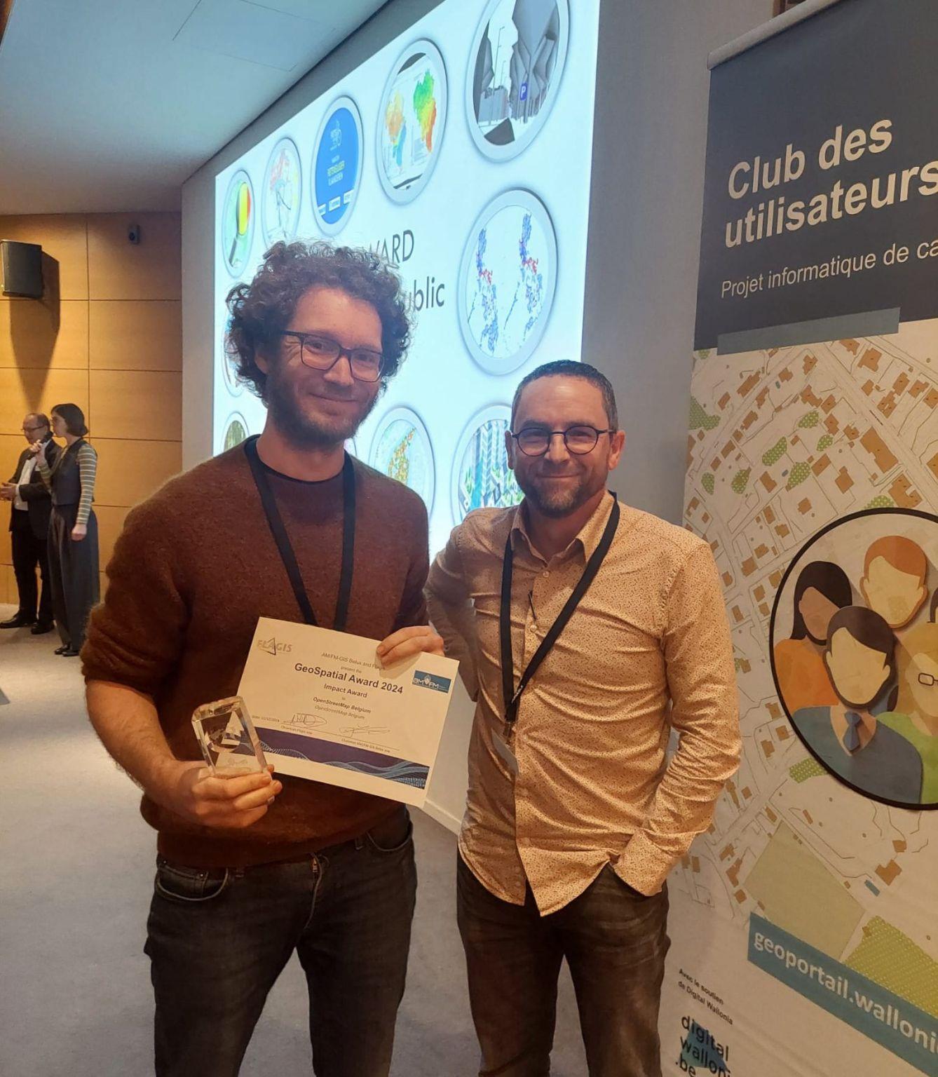 Our board member @joost_schouppe had the privilege to receive for us the first ever Impact Award at the Geospatial Awards organized by FLAGIS and AM/FM-GIS BeLux, the two main GIS user organizations in Belgium.