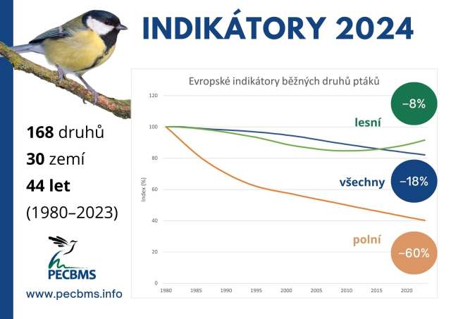 Ornitologové dnes zveřejnili aktualizovanou verzi indikátorů evropských ptáků. Ke zvrácení jejich dlouhodobě klesajícího trendu však ani letos nedošlo.Česká společnost ornitologická (Česká ornitologická společnost)