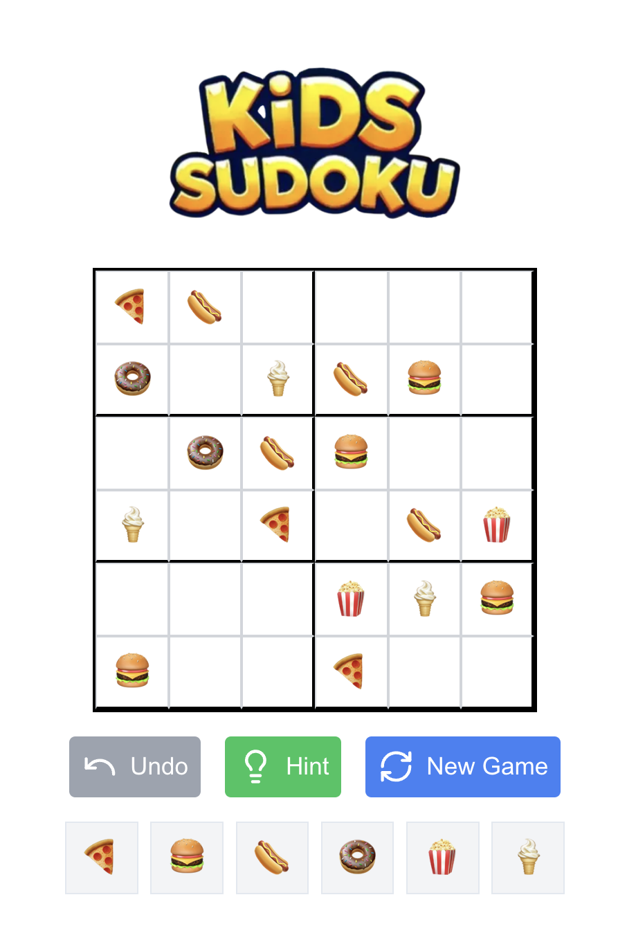 It uses a small 6x6 grid, and emojis in theme sets rather than numbers.