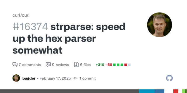 strparse: speed up the hex parser somewhat by bagder · Pull Request #16374 · curl/curl