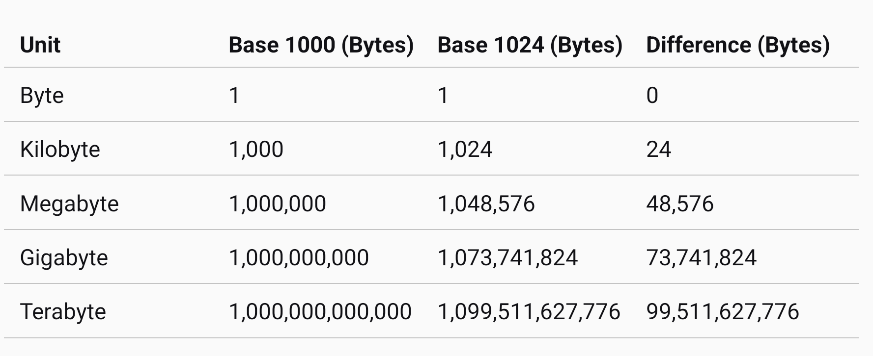 in reply to Tuta • • •It still hurts me to see tables like this. While I learned that stuff (30 years ago) the base was 1024 instead of 1000.