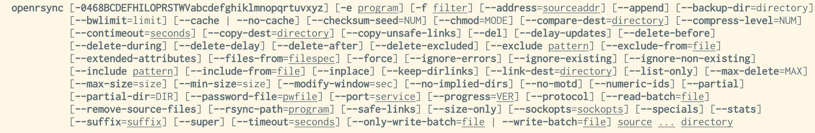 in reply to Julia Evans • • •Rsvg-convert's approach is to *not* list all the options in a single block. Instead, it lists all the available options, but grouped by task. Each short option is listed together with the corresponding long option. Not all long options are mapped to short options.