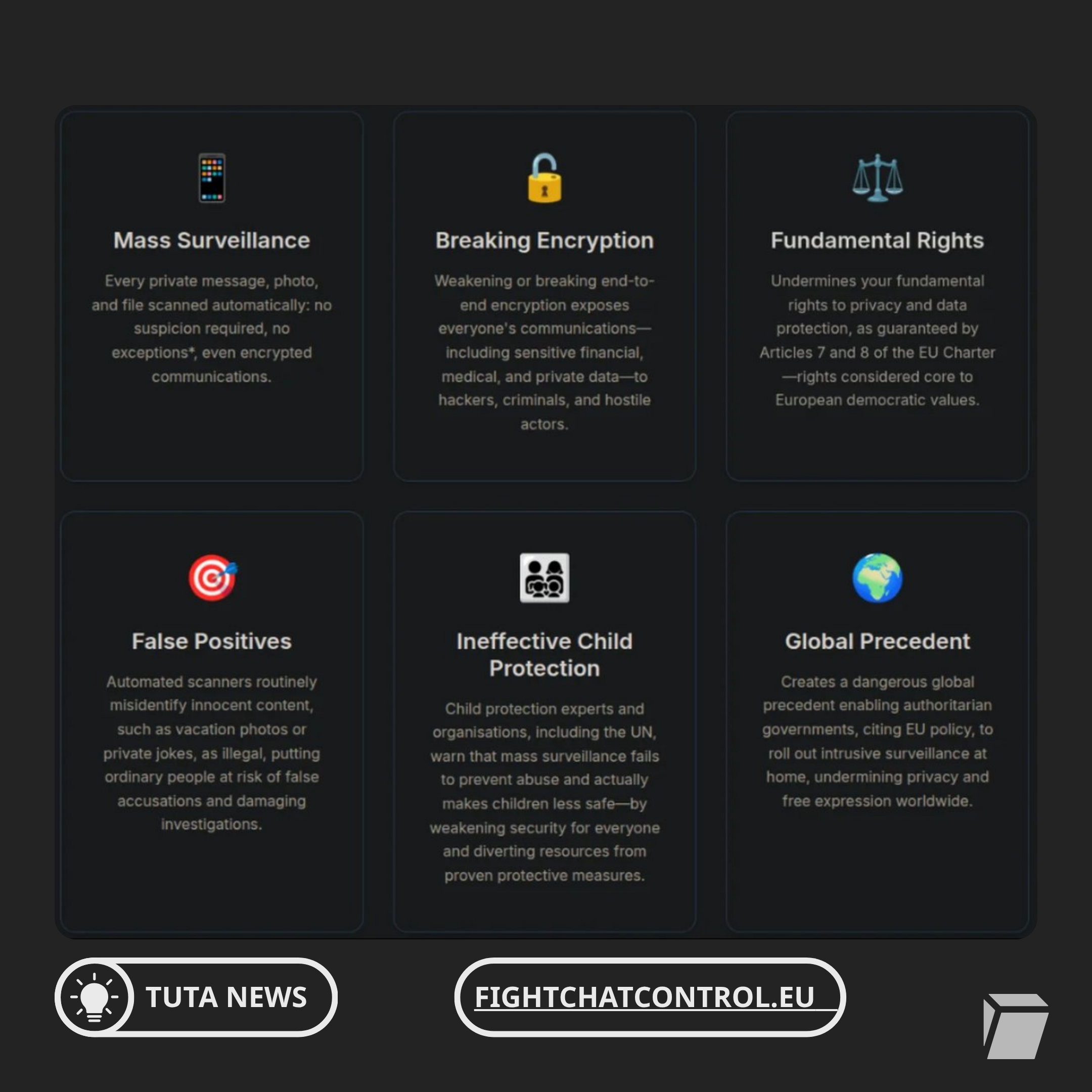 in reply to Aaron Caskey-Demaret • • •@aaron The Matrix.org Foundation is not only run by people who are vocally opposed to Chat Control, we are duty bound by our mission to oppose it much like we opposed the most egregious parts of the Online Safety Bill before the UK signed it into law.