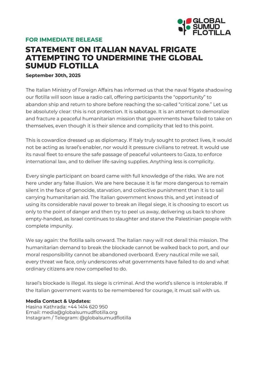 Global Sumud Flotilla today: