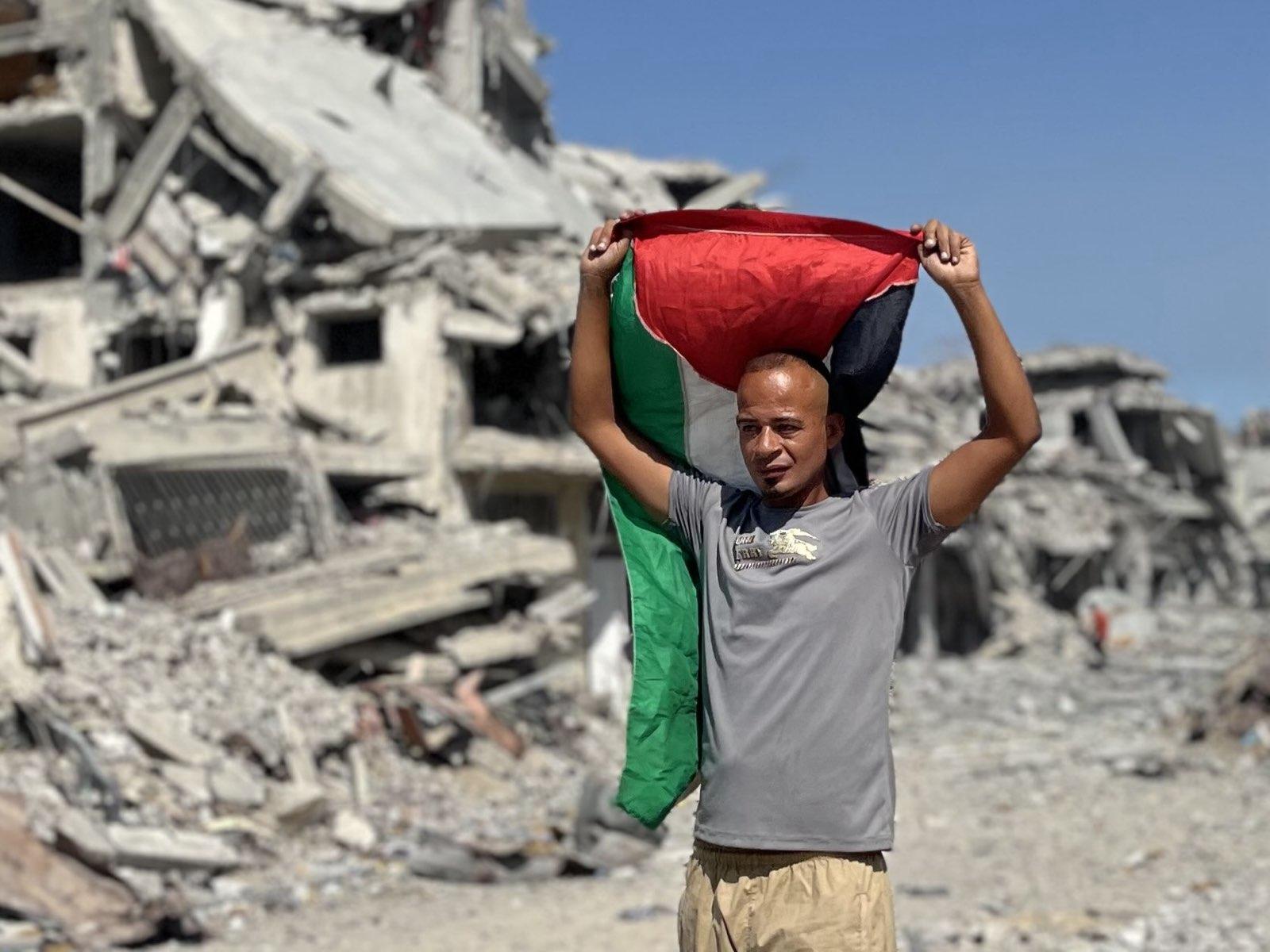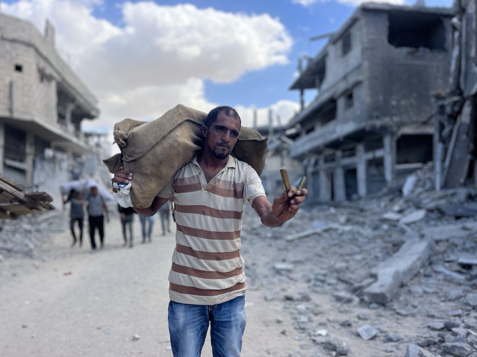 Photos of some young men who returned to check on their destroyed homes after the IDF withdrew.