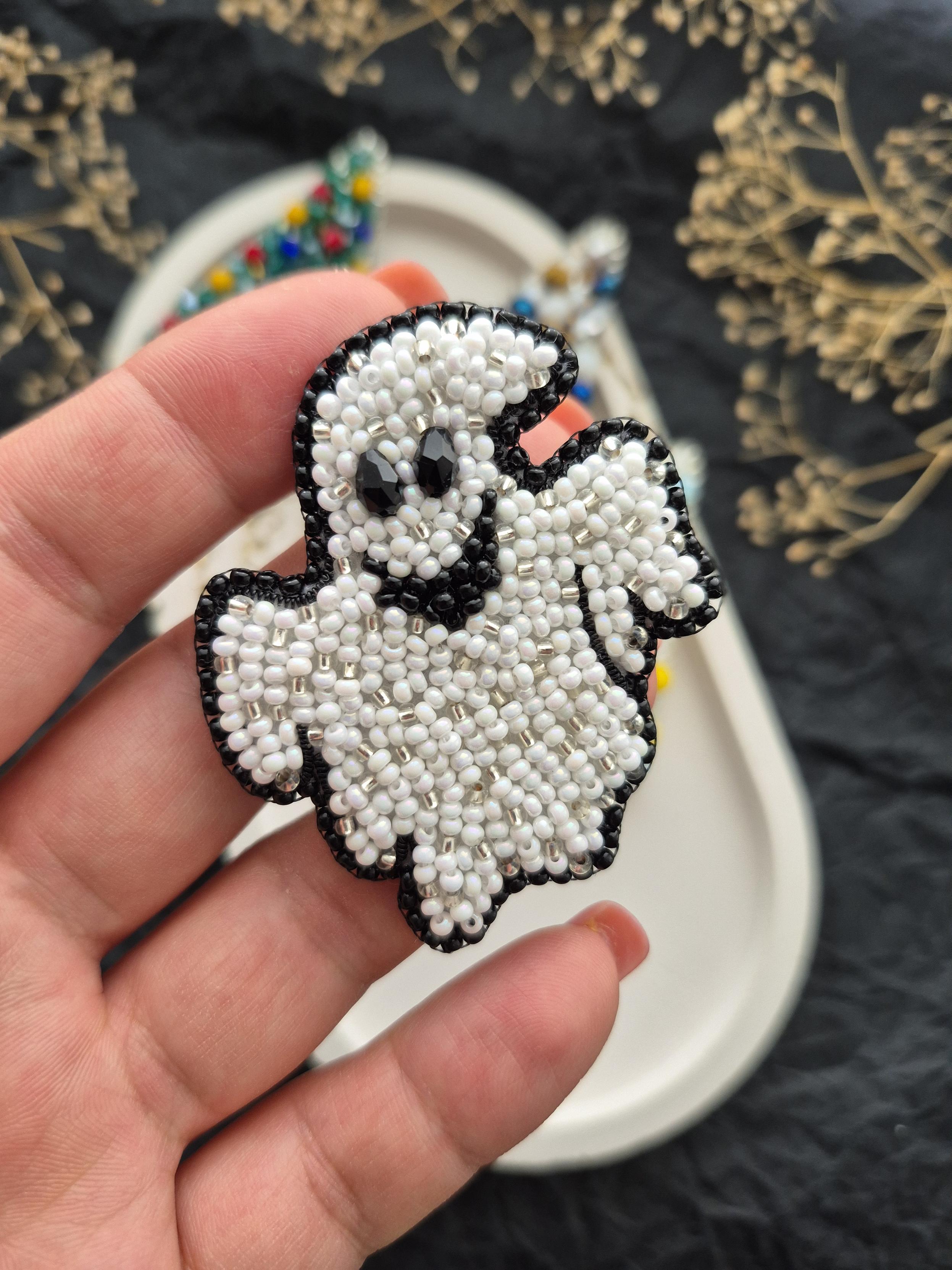 Help these brooches find a home, there are only three 🎄Christmas tree brooches left and one 👻Ghost brooch.
