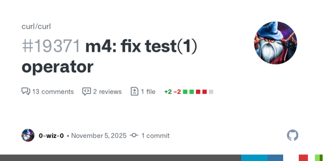 m4: fix test(1) operator by 0-wiz-0 · Pull Request #19371 · curl/curl