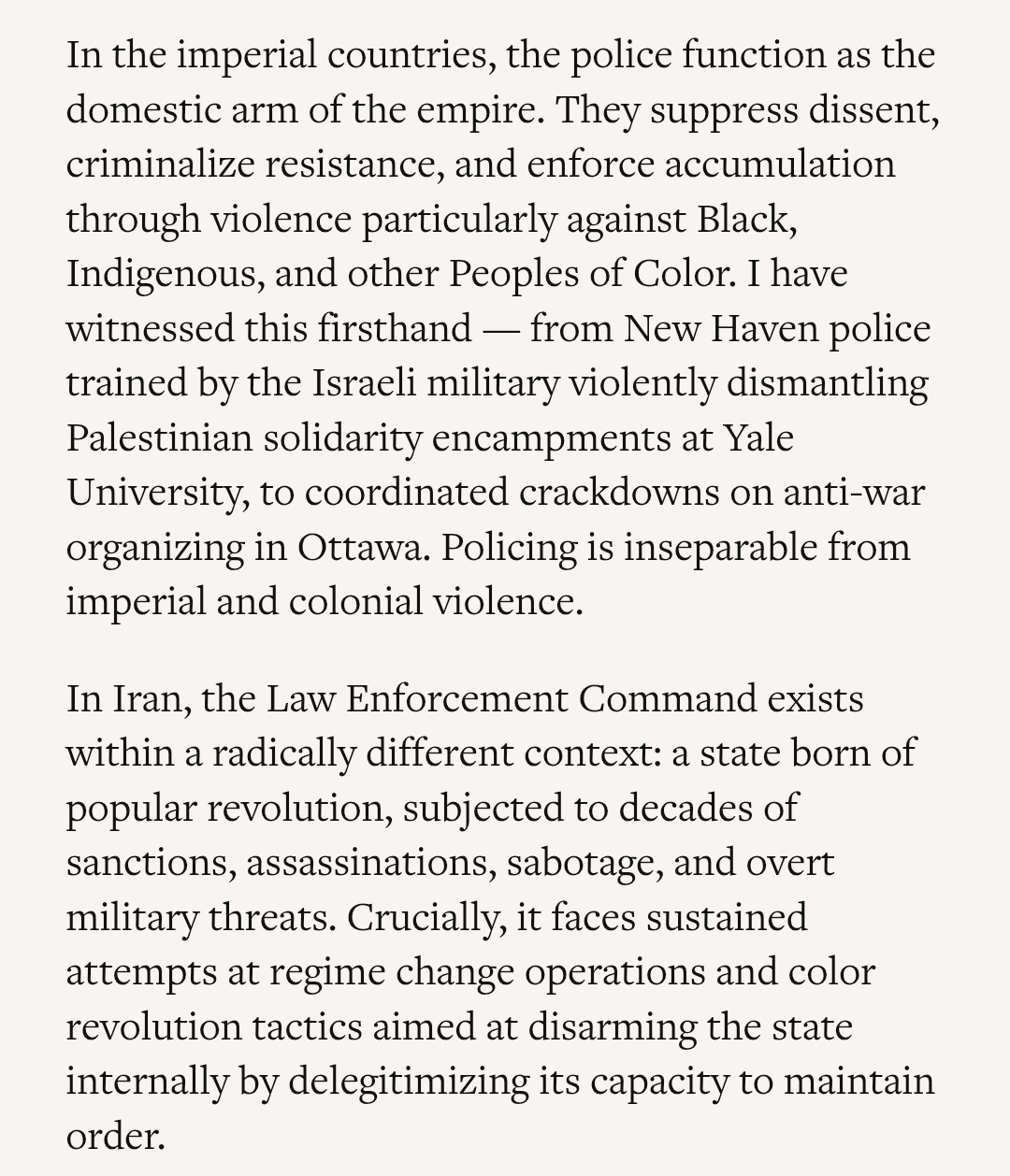After seeing so-called anti-imperialists online celebrating the murders of Iranian policemen, it is really important people read this article. Best english language article on the Islamic Republic that I have read in awhile.