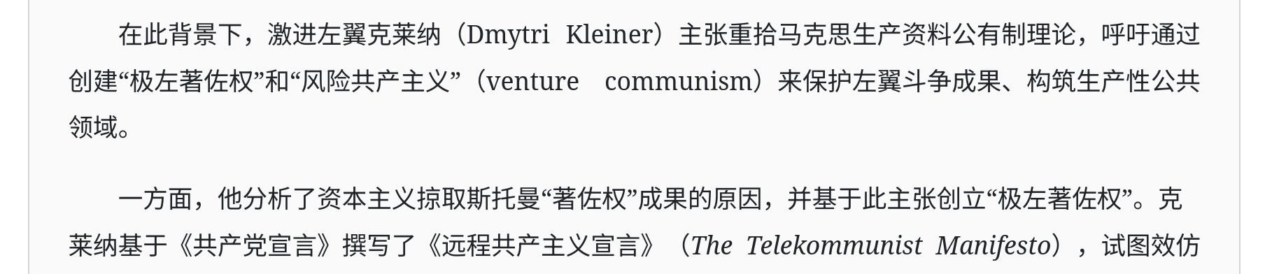 Wow, my work was cited in a Chinese Marxist journal by Liu Yang (刘洋), a PhD candidate at Fudan/Frankfurt. His article uses my 'Copyfarleft' concept as a key part of his argument for "knowledge socialism."