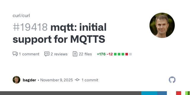 Say hello to the 29th URL scheme #curl supports MQTTS://