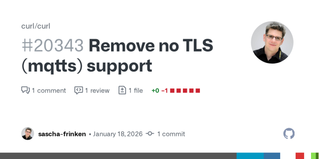 Remove no TLS (mqtts) support by sascha-frinken · Pull Request #20343 · curl/curl