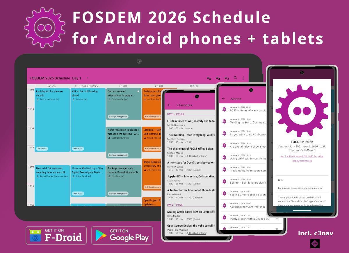 The โš™๏ธ FOSDEM 2026 Schedule โš™๏ธ app for Android is now available: