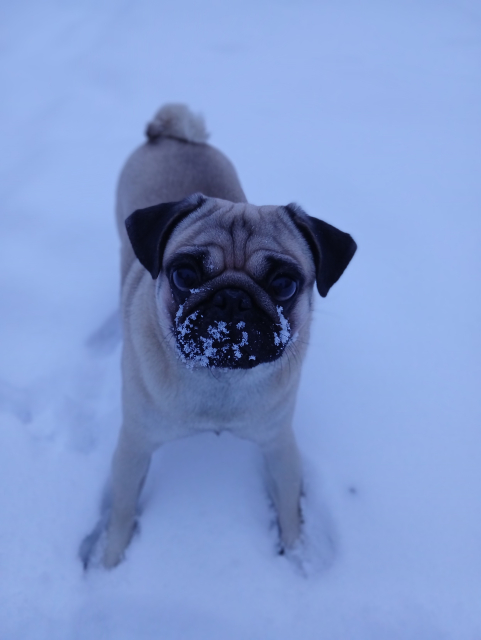 Sněhu trochu napadlo, takže díky všem dodavatelům. Největší radost má Archibaldík. Miluje sníh. Rochní se v něm, hrabe, nasává. Nejraději má sněhové koule. Akorát teda ty mrchy po dopadu vždycky někam zmizí. Takže pokud si nezapamatuje místo dopadu, hrabe s vervou na úplně jiném místě. Zítra zase vyrazíme. Tentokrát za mnou kšírky nadarmo tahat nebude.