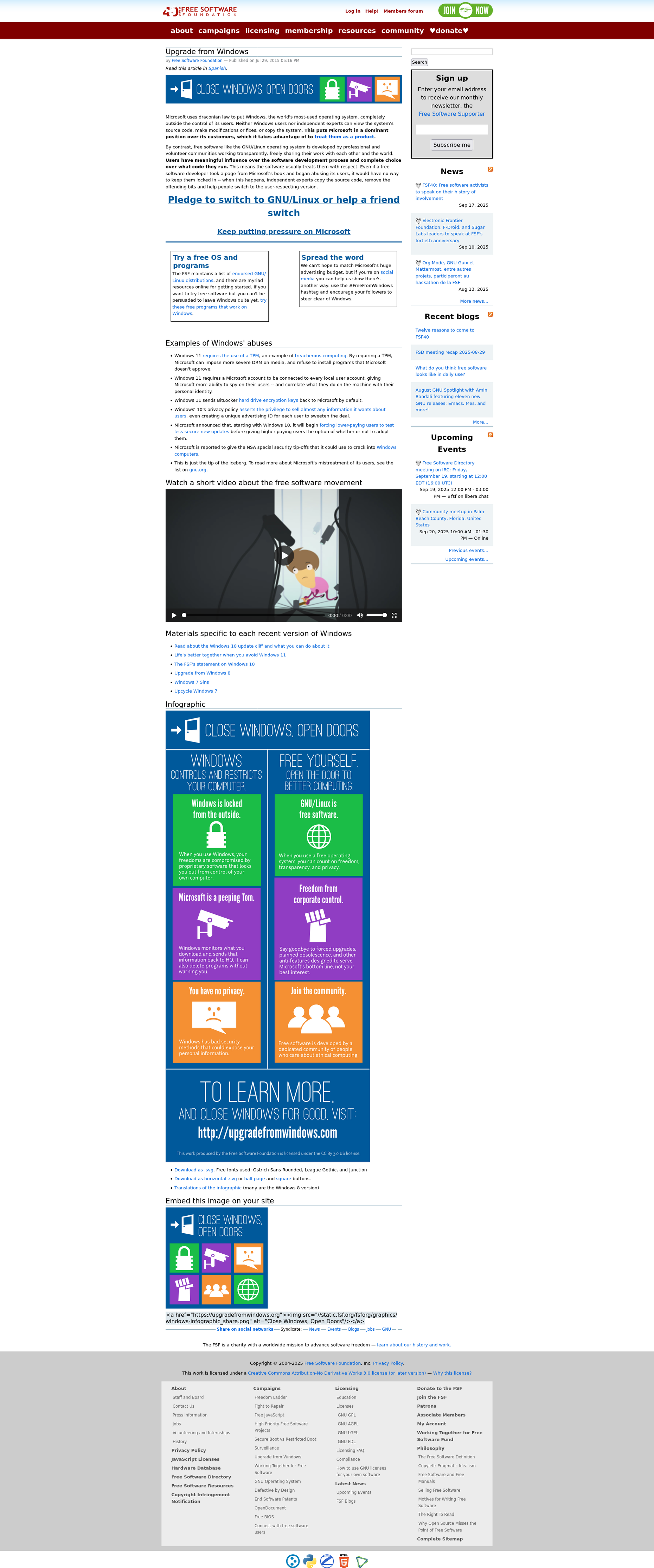 The FSF has long ceased to be a leading voice on user freedom, but that’s fine: there are many organizations doing that work now, in various areas and from different angles, just like the endof10.org example shows.