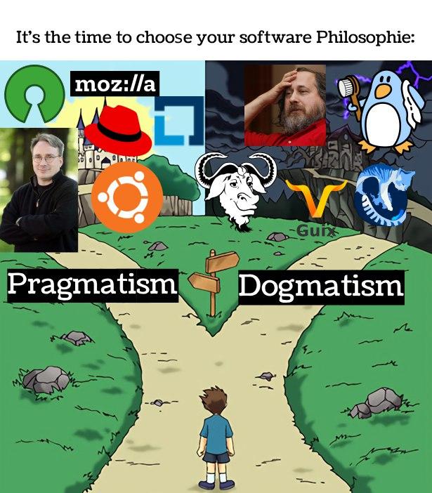 @yearofthebug I'm not talking about "idealism vs pragmatism": I am talking about leading the conversation when it comes to software freedom. The FSF is not talking to actual people: it's just a circlejerk that is not meant to convince anybody except the already initiated