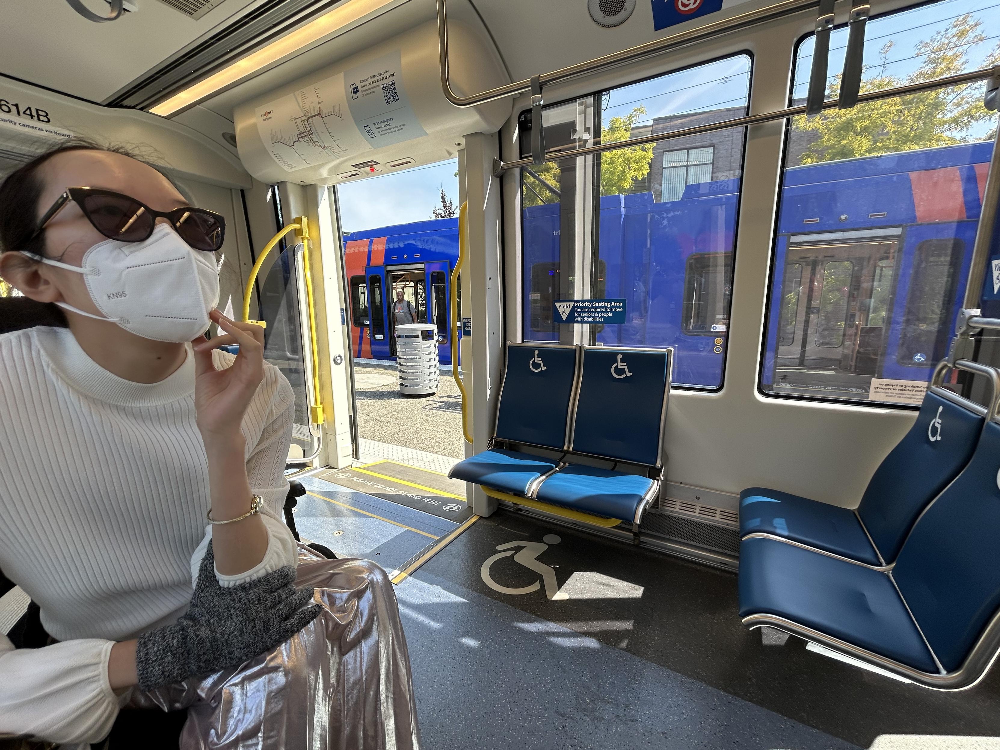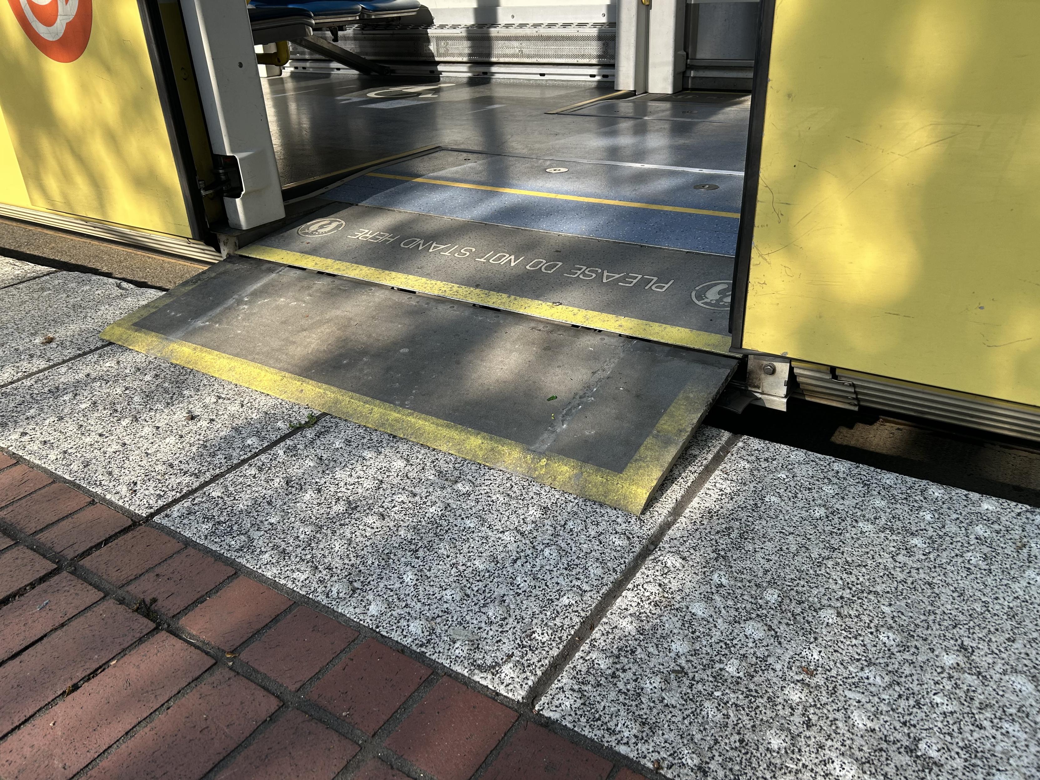 Neither the streetcar nor the MAX has level boarding. Wheelchair riders have to press a button to deploy a small ramp. Aubrie says, “It’s tragic because it’s so close to being level boarding. If they really wanted to, they could have.”