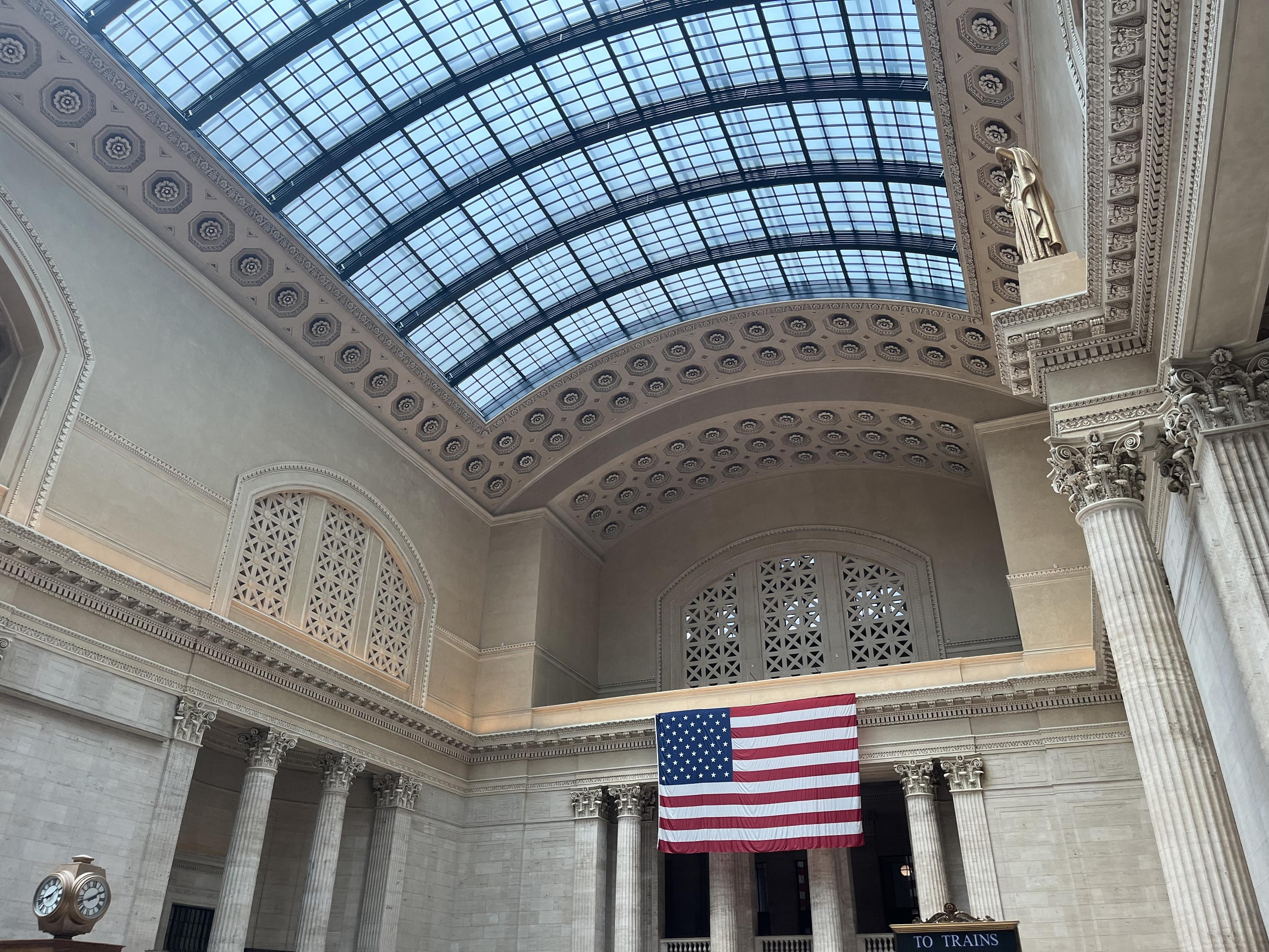I’m late posting this, but we made it to Chicago from Portland yesterday. We went along the Columbia River for a while, then through the mountains of Montana, which turned into mostly flat land, then into North Dakota , then Minnesota, then Wisconsin. MI and WI looked a lot like Iowa looked from the California Zephyr: mostly flat, lots of farms. Our wheelchair-accessible room was at the end of the train, and I enjoyed going up to the top level and looking out the back.