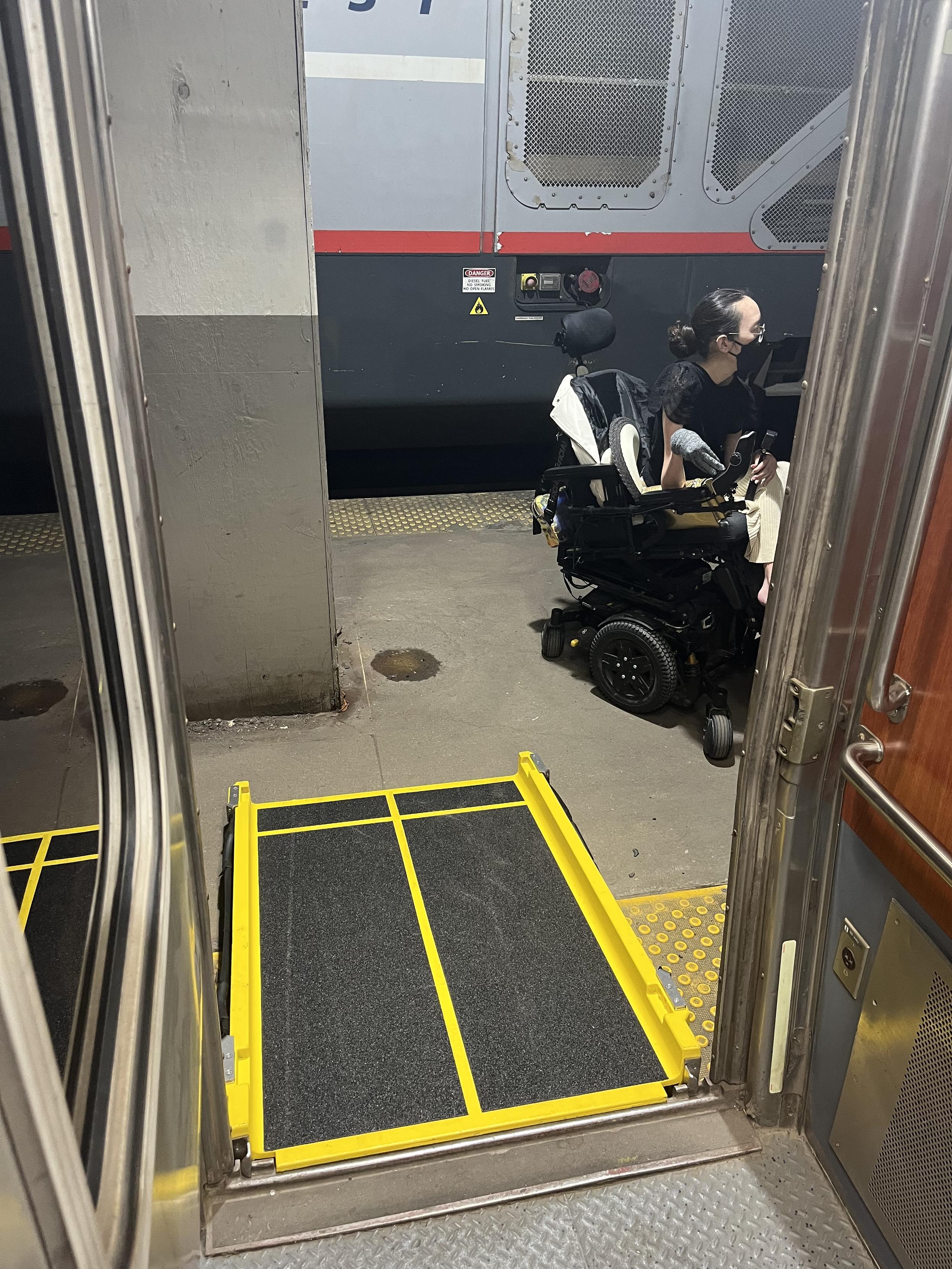 in reply to Peter Saathoff-Harshfield • • •Amtrak parked the train in the wrong spot, such that a column blocked the ramp at the door to our car, so they had to move the train. It’s not the first time this has happened.